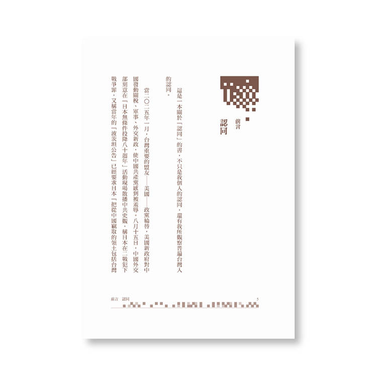 這是一本關於「認同」的書,不只是我個人的認同,還有我所觀察普遍台灣人的認同。