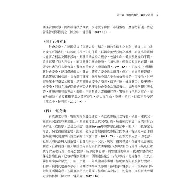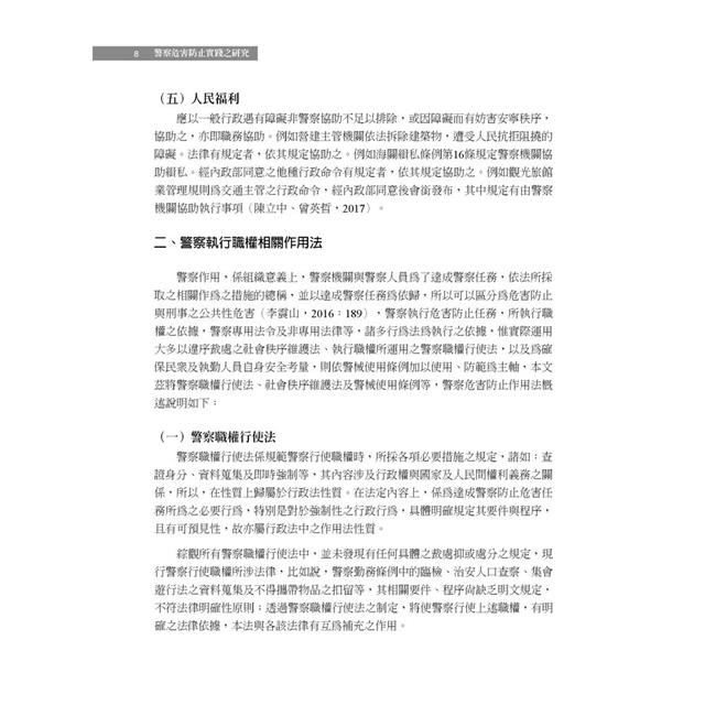 本書架構主要立基於警察執行職權,實踐危害防止之現有秩序法理論基礎上,加以區分為四大部分八章加以論述警察危害防止之實踐: