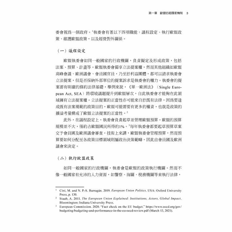 本書詳細探討歐洲聯盟的結構與政策,讓讀者全面掌握這一獨特多層次政治體系的運作模式及其發展過程。從超國家機制與政府間機制兩大視角,書中解析歐盟的治理結構,討論歐洲高峰會議、歐盟執委會、歐盟理事會、歐洲議會及歐洲法院等關鍵機構的角色,讓讀者一窺歐盟如何應對日益複雜的內外挑戰。