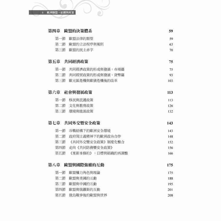 在這樣的背景下,本書將深入探討歐盟的結構、政策、運作模式,及歐盟在當前全球治理中扮演的角色。本書涵蓋八個章節,分析歐盟的結構制度、政策制定過程、各面向的政策,及歐盟各項政策面臨的挑戰與機遇。
