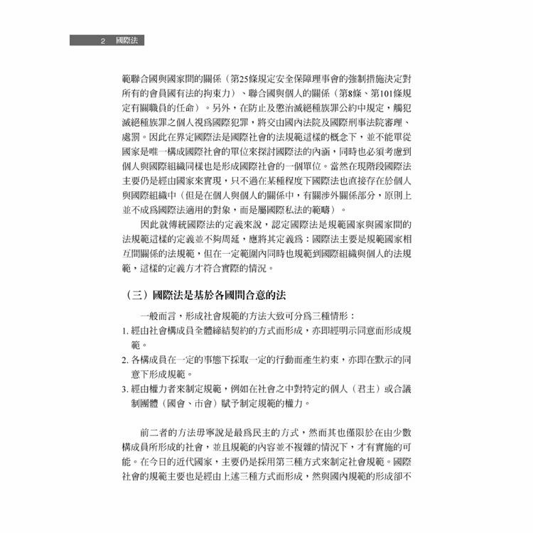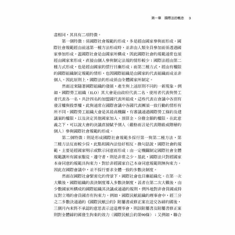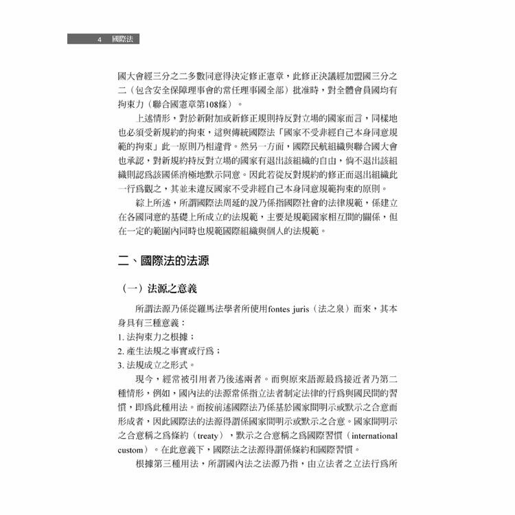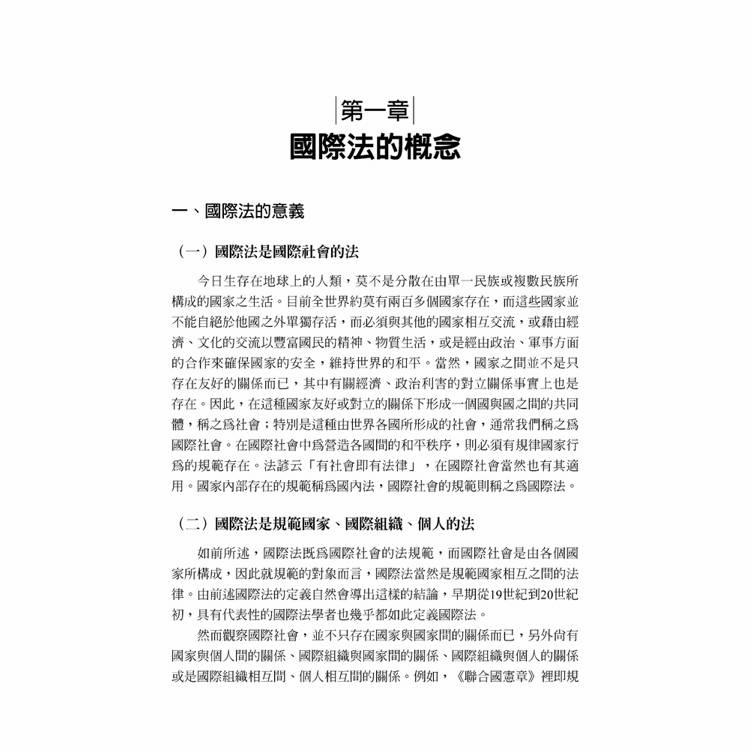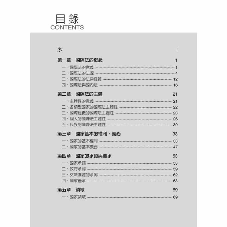 在許多人眼中看來,國際法甚至未必是個法律學科,這主要是從國際社會現實的表象來看。然而如果能夠了解國際法的發展仍屬於法制的原始態樣,或許可以注意到國際法存在的重要指標:國際間各項主張或訴求,其論理都是以國際法為基礎。在臺灣,或許因為國際地位的影響,使得國際法似乎一直不算是法律學科的顯學。然而,相較於許多已成文化、體系完整、架構嚴謹的法律學門,仍屬「原始法」型態而可見其進化的國際法領域,提供對法制發展及核心價值演變的學子們許多研究的課題,卻因為沒有接觸的機會而喪失產生興趣的可能性,著實可惜。長年以來,作者均專注於國際法等相關領域,一直希望有機會完成國際法入門之教科書,惟因一方面個人能力有限、另一方面因國際法所涉範疇甚廣,遲遲無法達成此一心願。然念及研究工作本是不斷累積的進程,本無盡善盡美之可能,從而毅然決然在民國成立100年的此時先作為小小的總結,將自己既有往年累積下來的教學資料、研究作果彙集成本書。