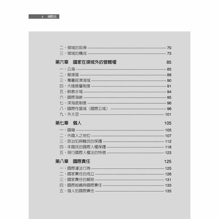 國際間各項主張或訴求,其論理都是以國際法為基礎。在臺灣,或許因為國際地位的影響,使得國際法似乎一直不算是法律學科的顯學。然而,相較於許多已成文化、體系完整、架構嚴謹的法律學門,仍屬「原始法」型態而可見其進化的國際法領域,提供對法制發展及核心價值演變的學子們許多研究的課題。本書定位屬於國際法入門之教科書,架構清楚,深入淺出,並酌以圖、表、案例說明,適於學子了解之用。