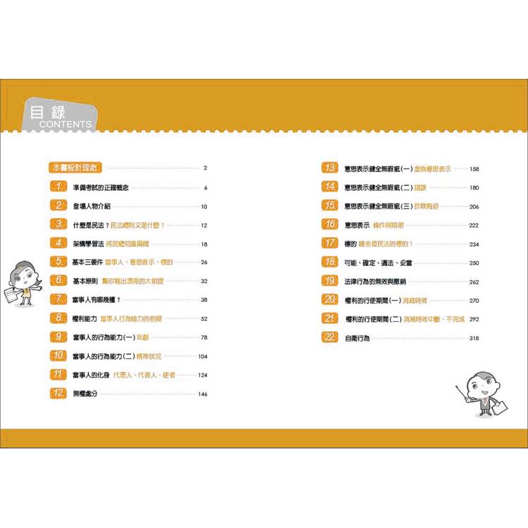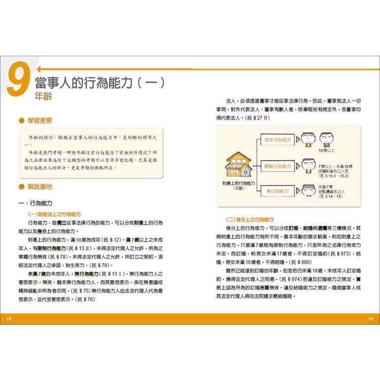  建立概念架構,解析法條內容,讓讀者能夠橫向全盤知悉、縱向深入瞭解民法及總則,甚至是相關法律。