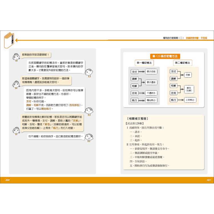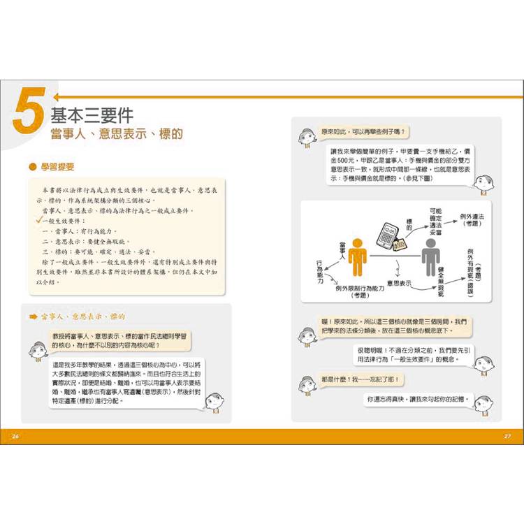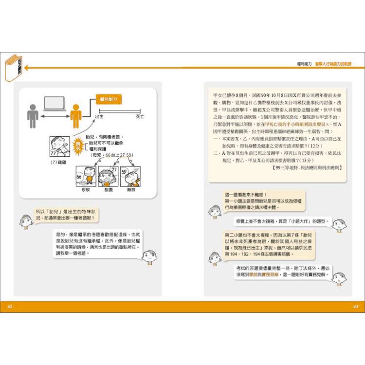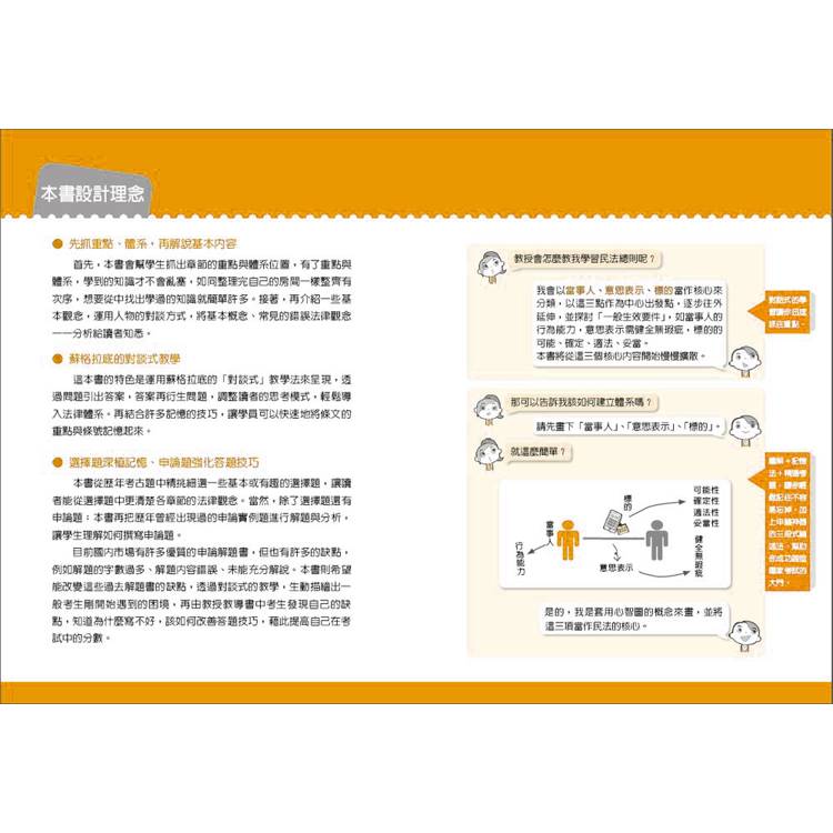  透過「對談式」教學的一問一答間將概念放射連結,在讀者腦中建構完整的法學知識脈絡。
