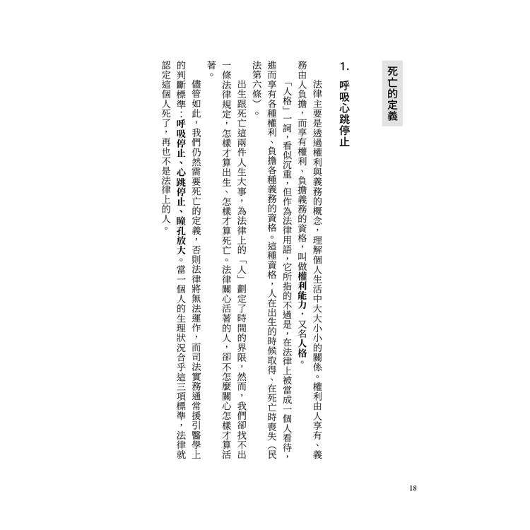 這方面的著作,市面上已有許多。由於人口老化,加以社會風氣的開放,談論死亡並為死後的事預作準備,早就沒有過去那麼忌諱。然而,當人們勇敢地面對死亡,往往很快就會發現,原來它是一個這麼複雜、這麼有趣的議題,相關著作於是一本接著一本冒出來,有的從哲學、宗教出發,有的從醫學、法學切入,從不同方面回應讀者的需求。