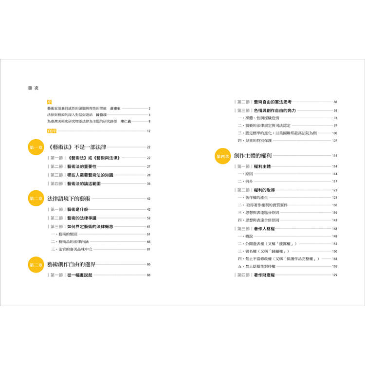 事實上,沒有一部叫「藝術法」的法律,本書使用的「藝術法」,並不是指涉某一特定法律的名稱。不可否認,「藝術法」在國內是相對陌生的概念。到底,這本書的內容在講些什麼?論述範圍為何?很多朋友直截反映,是不是講著作權法?不能說錯,但也不全然正確。