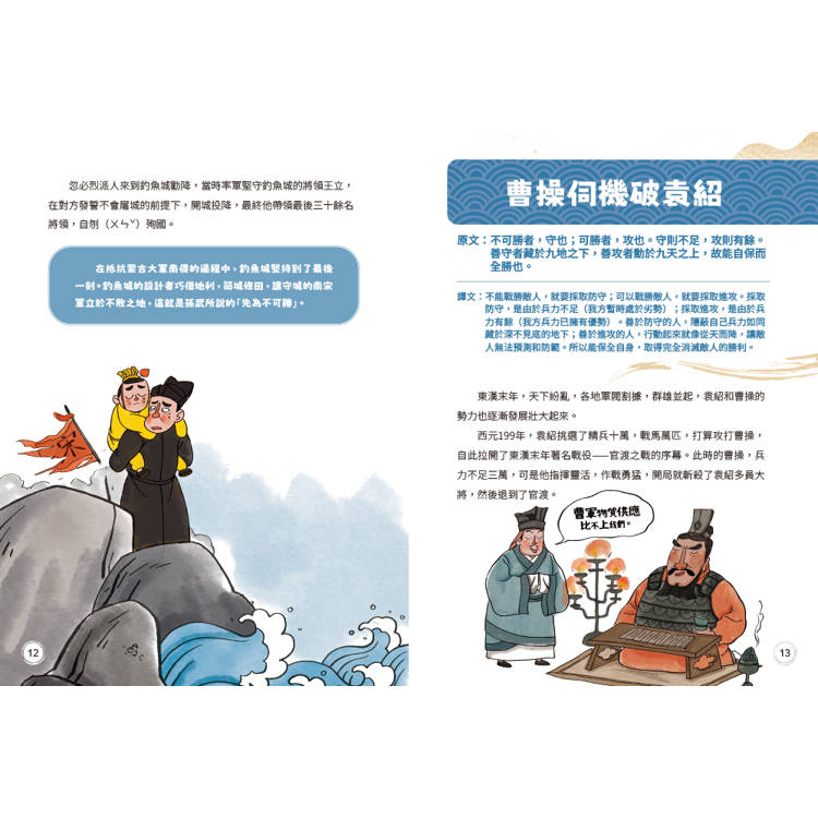 透過有趣的圖文對話,帶領讀者走進國學世界。讓讀者無形中,了解歷史事件及多個成語典故,解讀孫子兵法計篇到軍爭篇的精采內容,幫助讀者累積國學知識和寫作素材。