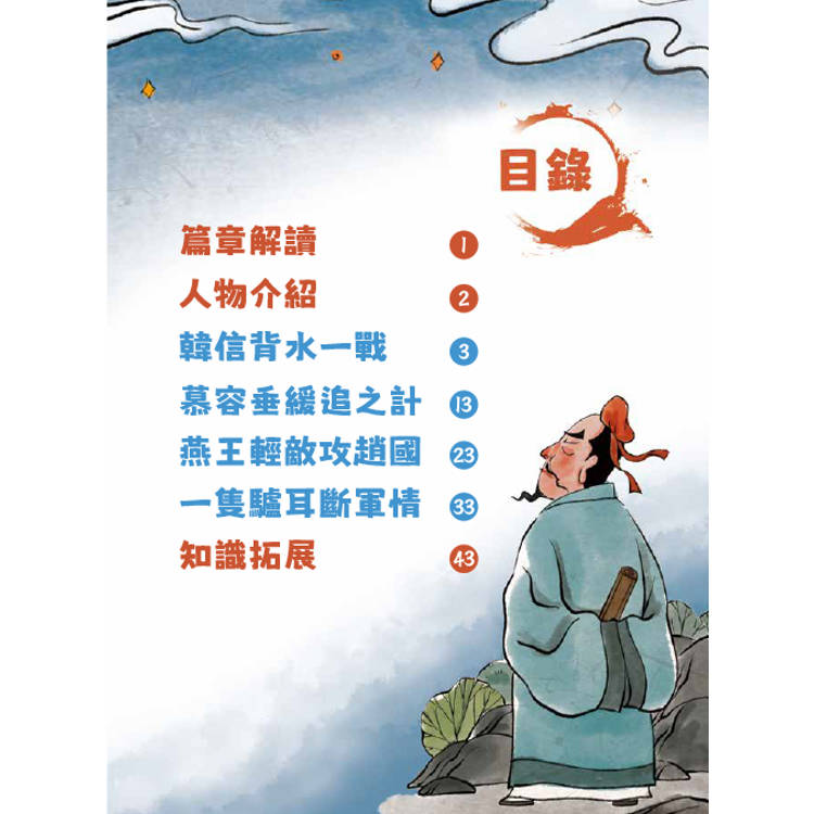 透過有趣的圖文對話,帶領讀者走進國學世界。讓讀者無形中,了解歷史事件及多個成語典故,解讀孫子兵法計篇到軍爭篇的精采內容,幫助讀者累積國學知識和寫作素材。