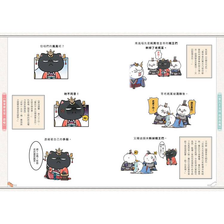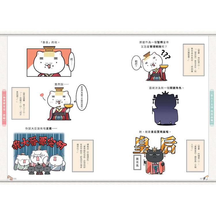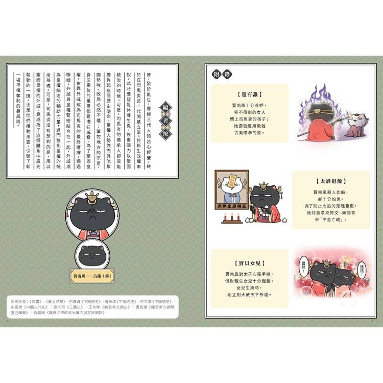 *沒有乾乾為何不吃罐罐?有這樣的皇帝喵,晉朝大臣集體傻眼貓咪!*以為三國結束喵喵們就安分了?東西南北立刻來個大分裂亂鬥!各位觀眾,五胡十六國來啦!*以為我們喵喵打架只會胡咬亂抓嗎?讓本喵在淝水為你們上演一場「無間道」!*從戰俘到國母,請問演出逆襲大戲的馮太后喵,妳是拿到重生還是穿越的劇本?*喂鬧夠了吧!什麼東魏西魏北齊北周,觀眾要不耐煩了。看我楊堅喵把你們收拾掉,隋唐盛世隨時準備拉開序幕!「所以說,下一集呢?」甫出版就被催更,吸貓上癮無藥可救,這就是天團喵的霸王色之氣!★可愛漫畫附上參考典籍,沒有亂編,全部源自文獻!★精彩附錄解說,輕鬆漫畫中學到有趣歷史,舒壓、學習兩不誤!