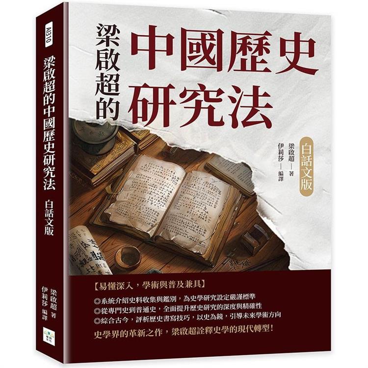 本書以白話文精鍊地展現了梁啟超對歷史學的深入見解,涵蓋史學的意義、範圍以及研究方法。全書從史學基本概念入手,追溯其發展並提出分為專門史與普通史的創新見解,更介紹了各類史料的收集與鑑別技巧、探討編撰史書的不同方式,使讀者能夠更全面地理解並運用歷史研究的方法。