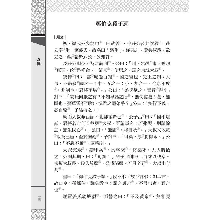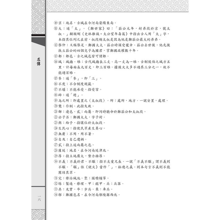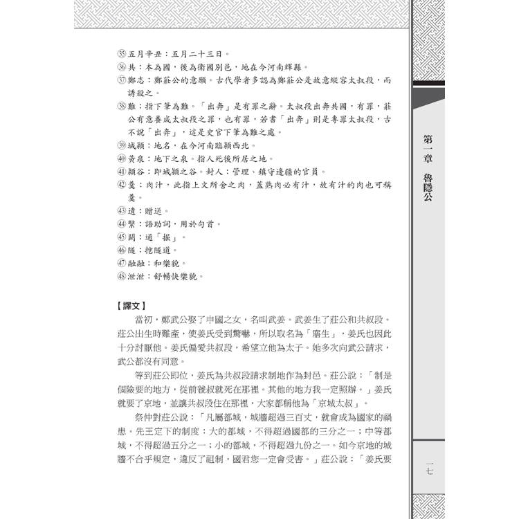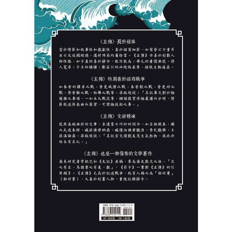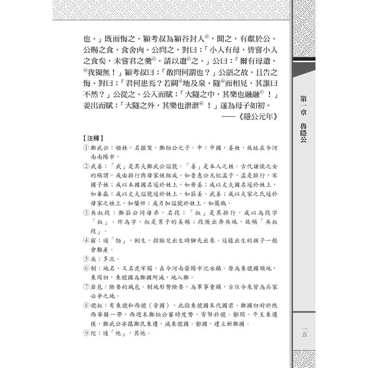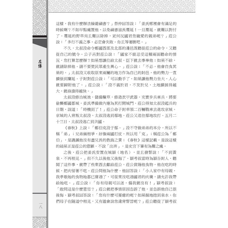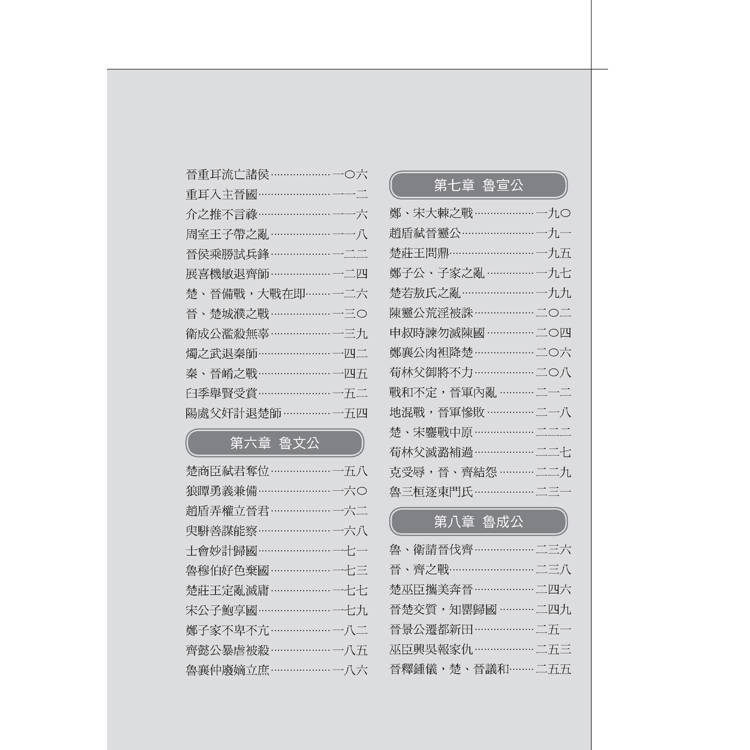 《左傳》是一部編年體史書,記錄古中國春秋時期中原各國的歷史,《左傳》卷帙浩繁,內容龐雜,涉及政治、經濟、軍事、外交、天文、地理、農業、醫學、習俗、文藝等諸多領域,將春秋甚至更為久遠年代的社會文化與生活形態清晰地展示給讀者。