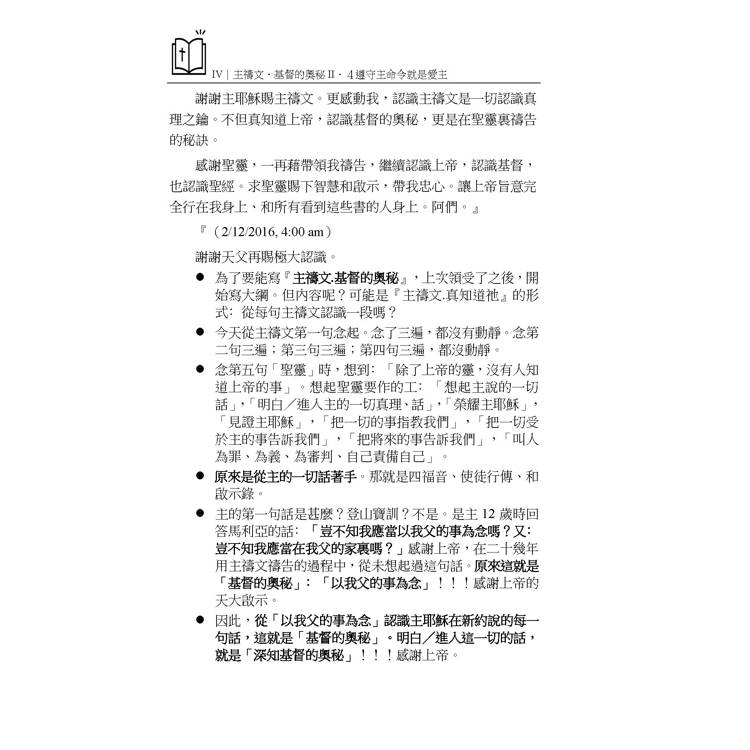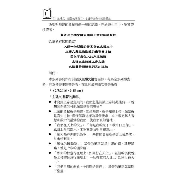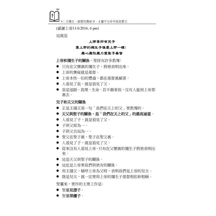 本書『主禱文. 基督的奧秘 II.4遵守主命令就是愛主』』為單本書: