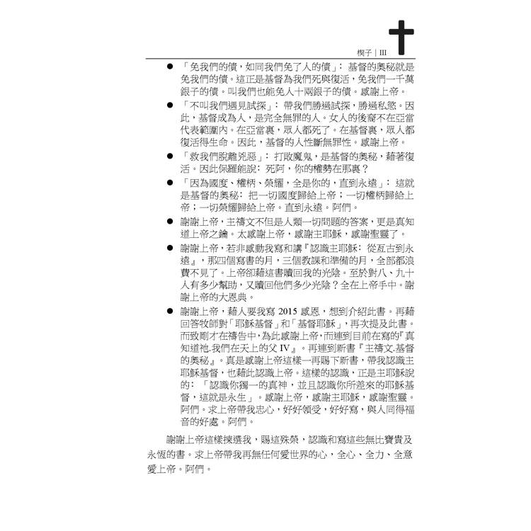 上帝的奧秘就是基督。知道基督就是知道上帝。深知基督的奧秘就是真知道祂。主禱文是認識上帝之鑰,是認識聖經的極寶貴方法,因為不是從人的角度認識。