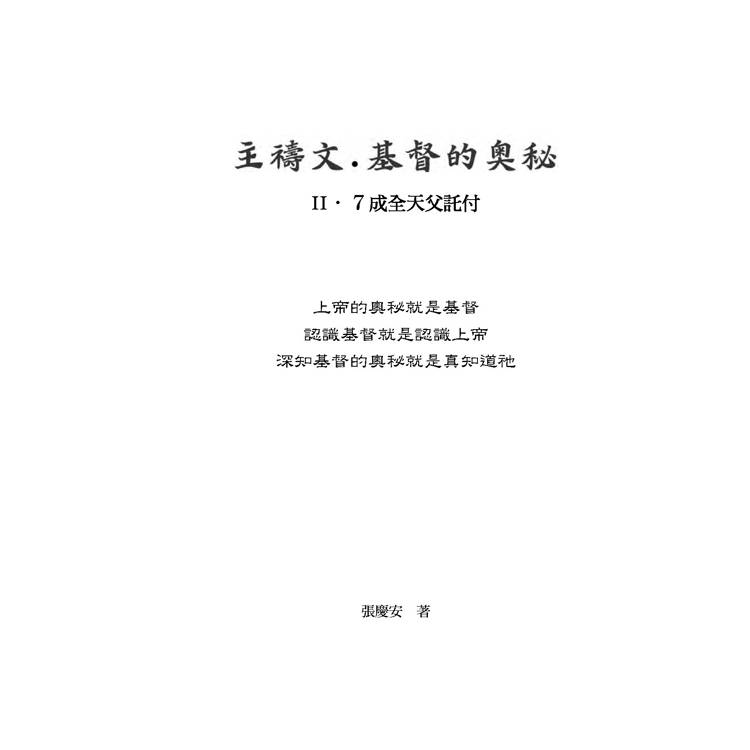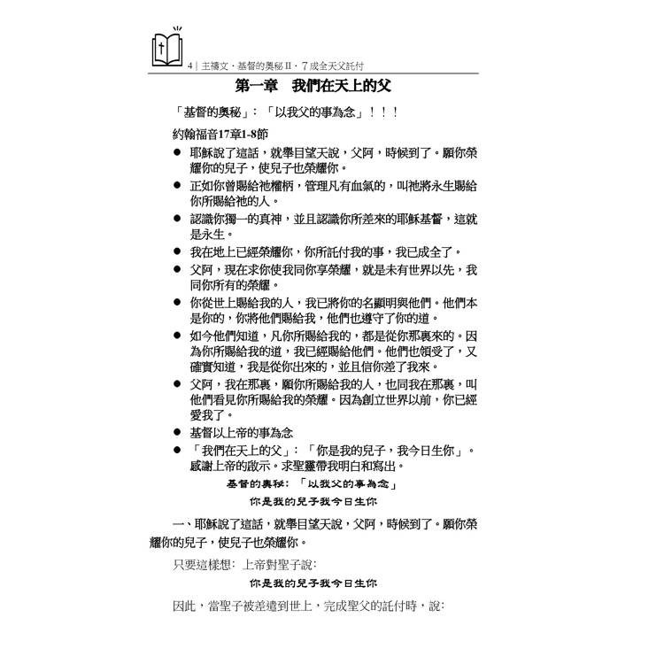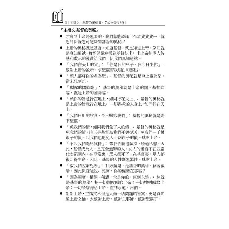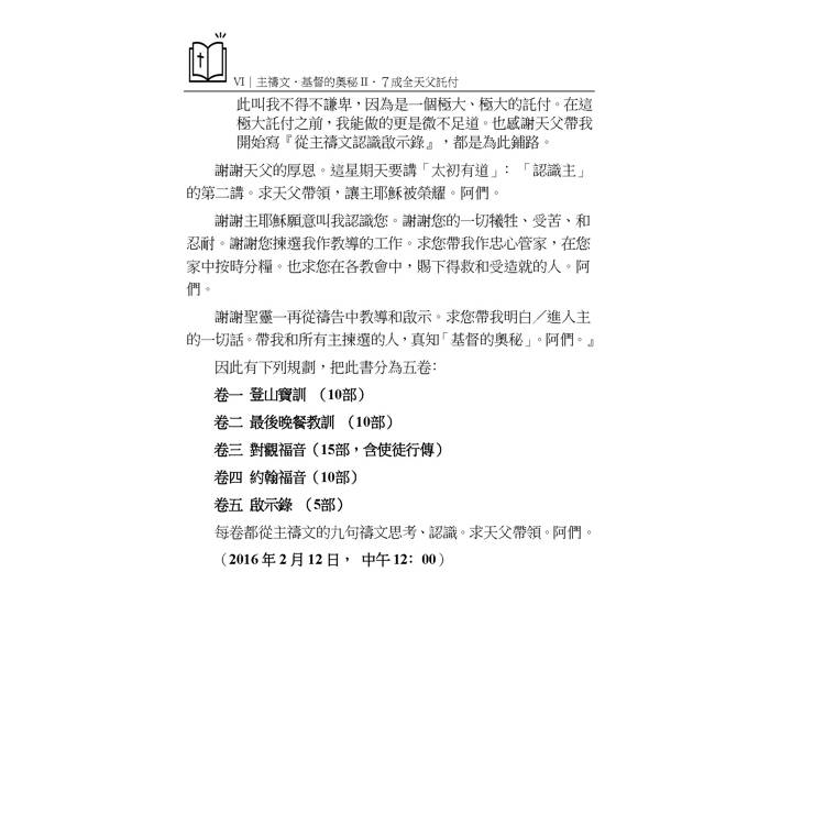 為在Amazon出版需要,有以各單本出書者,有數本合成一書出版者。本書『主禱文.基督的奧秘II.7成全天父託付』為單本書: