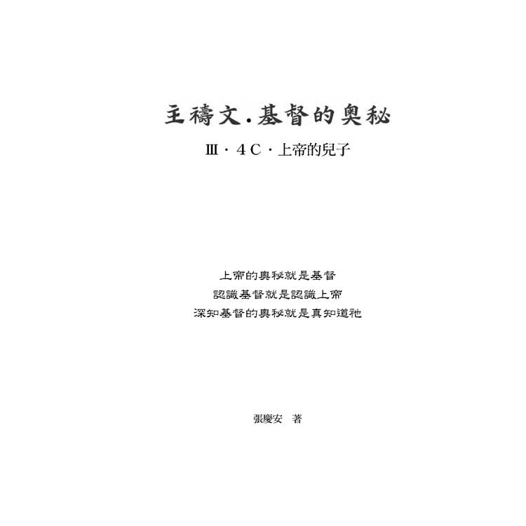 兩千年來,無數的基督徒盡力認識基督。從認識基督,而認識上帝。在這本書中,