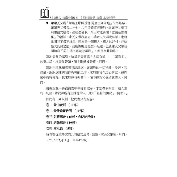 《主禱文.基督的奧秘》叢書系列分為五卷: