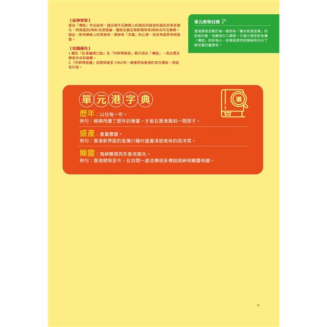 ★《香港是我家 單元一: 香港是何地 (教師版) 》是為使用「思故鄉港」此套教材的家長與教師而設計,相較於學生版,教師版加入了【教學目標】、【補充說明】、【延伸學習】、【課堂活動】等欄位,輔助家長與教師引導學生思考,並提供相關的背景知識。此外,教材中的互動練習,亦於教師版附有參考答案,以便教學時與學生討論使用。