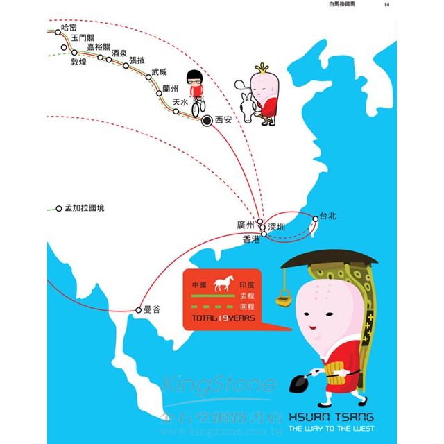 原來「唐三藏」本名「玄奘」,出發時不僅沒有皇家贊助商還兼偷渡客;沒有滿天神佛的加持外掛,也沒有神級屬下,僅有「赤瘦老馬一匹」。(相較之下,鐵馬真是勇健多了)路過的風景依然是雪山沙漠百里戈壁火焰山,路上的新朋友換成強盜流氓,一樣殺人不眨眼。