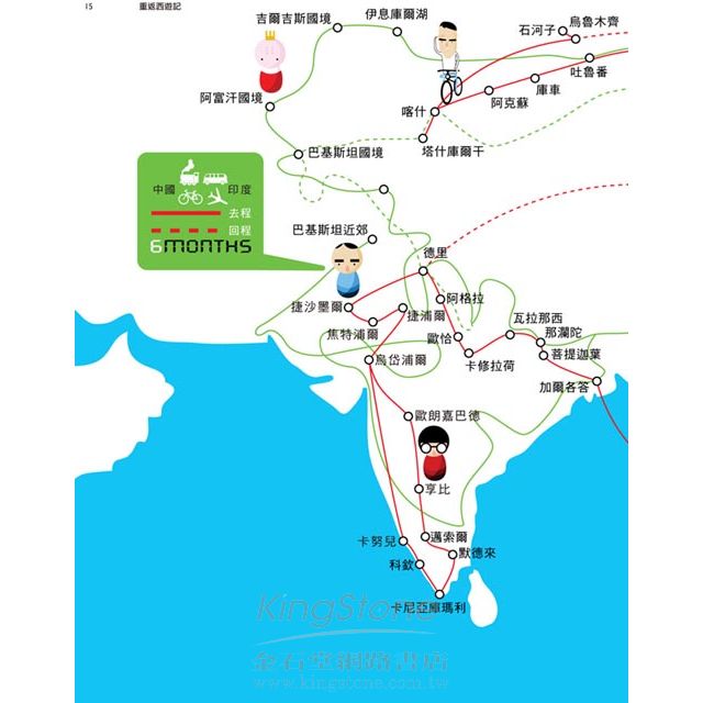 兄妹倆以幽默的文字搭配照片和逗趣插畫,以及旅途中手繪記事提升閱讀趣味,讓穿越絲路的艱辛與印度各城鄉的大暴走經驗生動的呈現。
