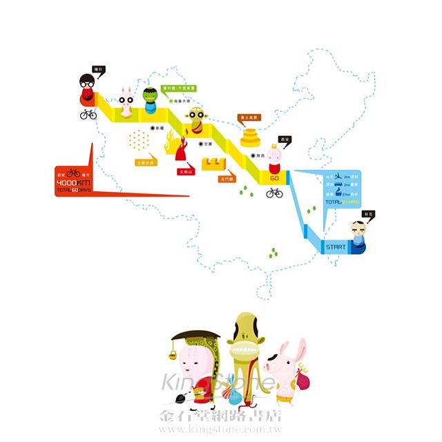 旅程參考《大唐西域記》與《西遊記》的記述,探訪玄奘取經路線與遺跡。這趟重返西遊記現場的開始是先搭飛機抵達深圳轉公車至廣州,搭乖火車由廣州抵達西安,停留數天後再取道河西走廊穿過甘肅進入新疆,經由敦煌至東疆的哈密與吐魯番,走過古時的高昌故城,騎在傳說中的火焰山脈,再進到南疆的庫車、阿克蘇抵達中國最西邊的城市喀什,再騎行至世界海拔最高的國界紅其拉甫口岸返回喀什。