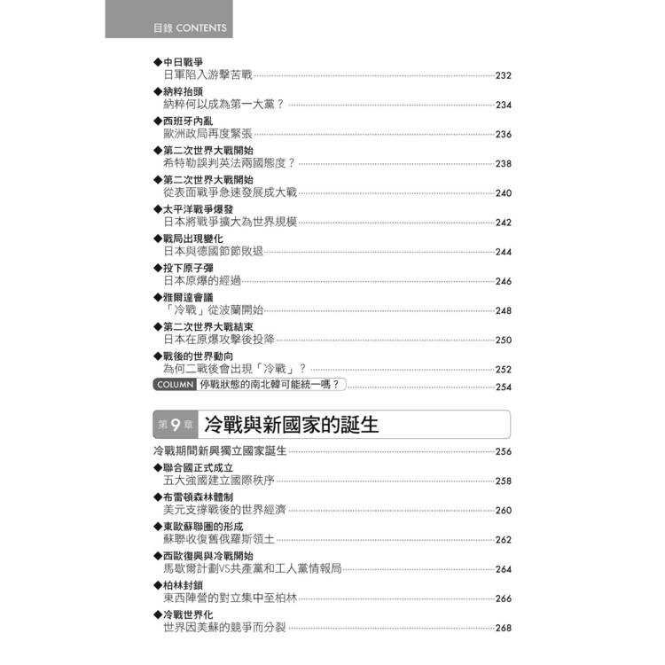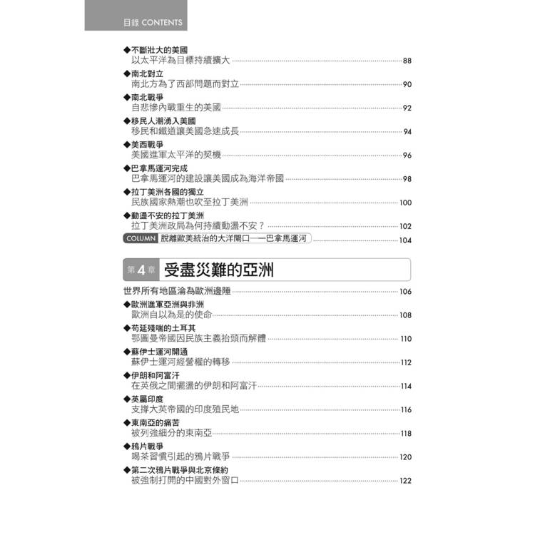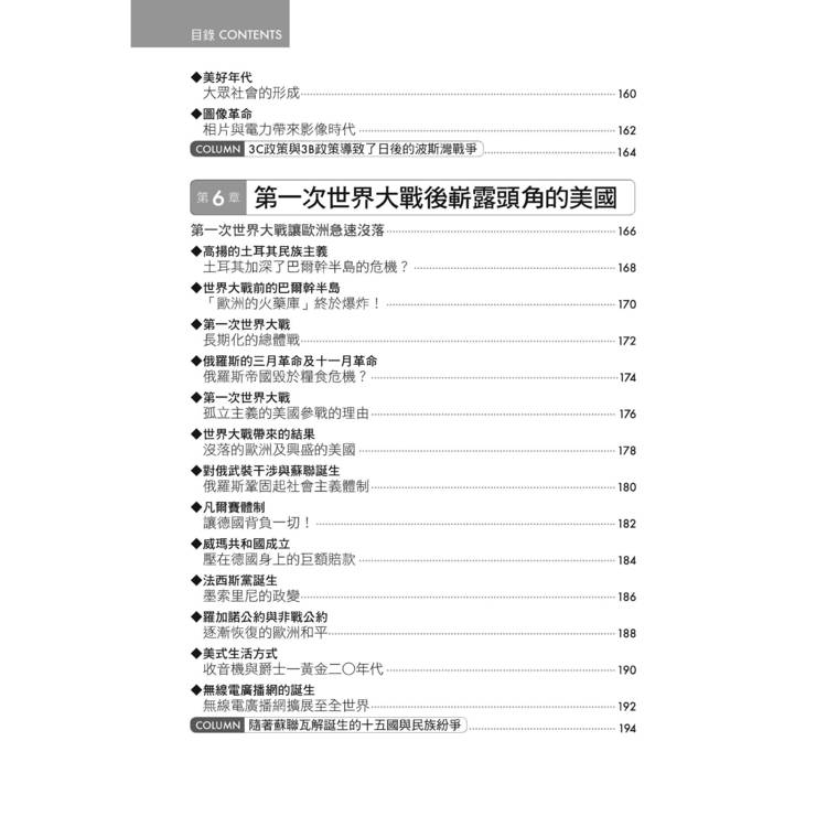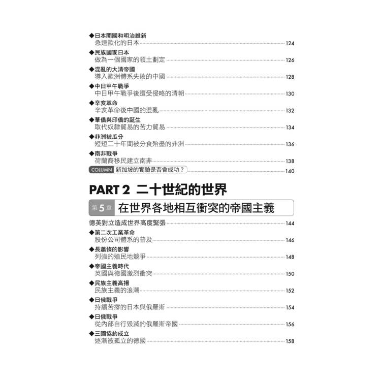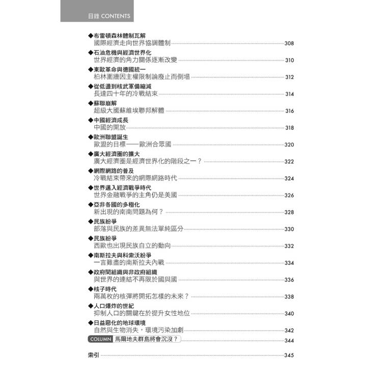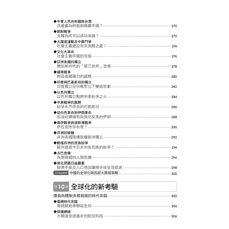 此外,本書亦特闢專章介紹美國的革命與國家的成長,以及新帝國主義壓力下亞洲與非洲的困境。美國的世界霸權與亞、非洲的反殖民運動,是二十世紀世界史的重要現象。