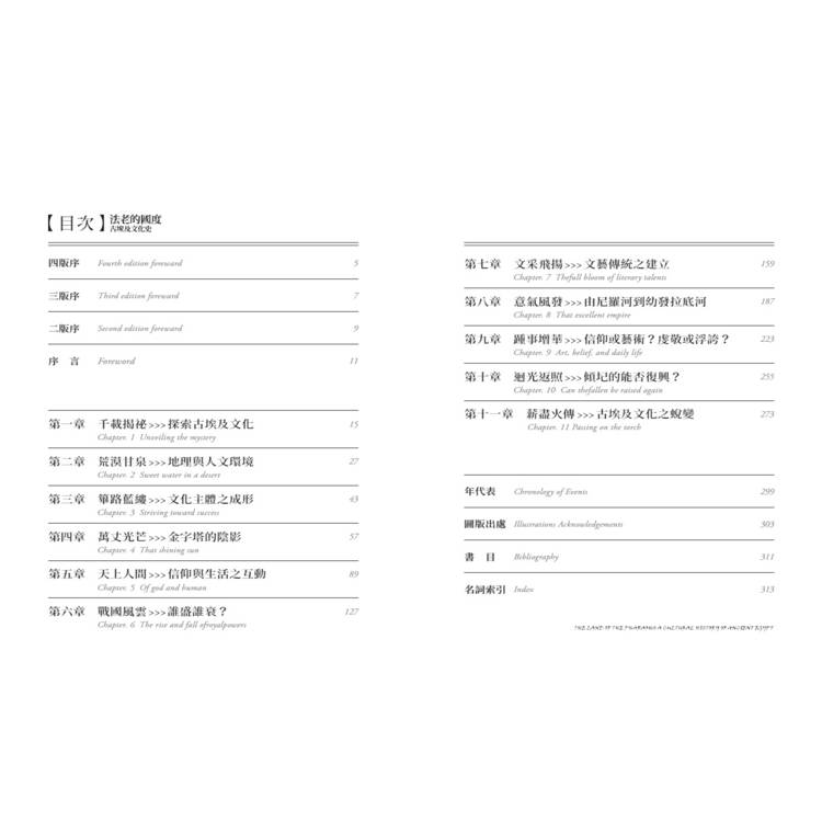 除了走進古埃及的內在世界,本書也將目光投向尼羅河流域之外,概述其與巴比倫、以色列、波斯等周邊政權的交流碰撞,以及歷代文人對古埃及的興趣和探索,最終匯流成「埃及學」的漫長過程。讓我們翻開書頁,循著現存遺蹟、重大事件與時人觀點,再次聽見法老與祂的子民,自歷史長河彼端傳來的悠遠回音。