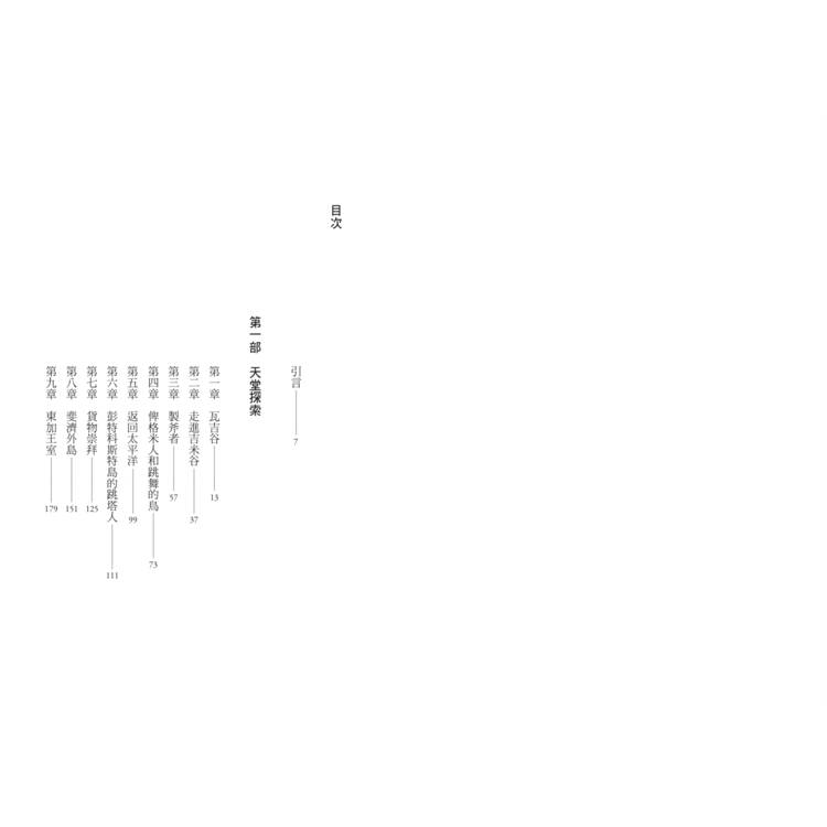 全書分為三大篇章,分別記述艾登堡爵士在不同區域的探索經歷。天堂探索篇,帶領讀者深入巴布亞紐幾內亞的原始雨林,記錄尋找天堂鳥、拍攝求偶行為,以及參與當地部落婚