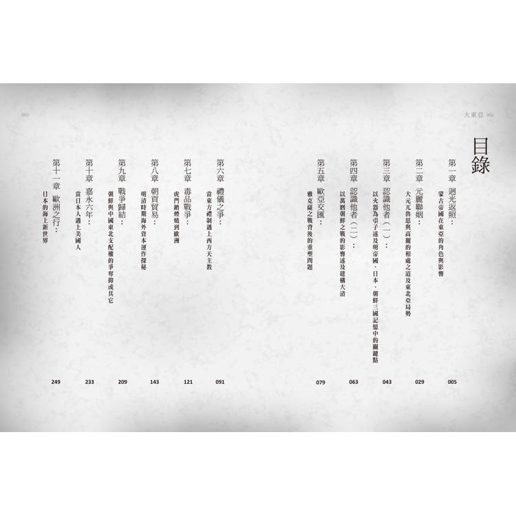 本書講述自元帝國的分裂到近代東亞的局勢發展,帶領讀者看見我們所生活的這片區域發展進程。