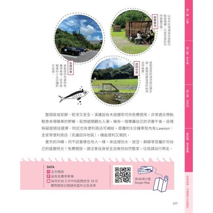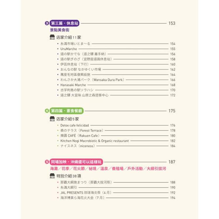 沖繩還有很多你不知道的玩法,消暑祕境、溫泉、爬山健行、花季、煙火祭、傳統祭典……等,都是實際走訪後記錄與你分享,沖繩絕對比你想的多更多,總之就是沖繩好好玩,沖繩玩不完。本書中的一點一滴都充滿對沖繩的愛,每一頁都值得你細細品嘗,希望你也能找到屬於你最喜歡的沖繩節奏。