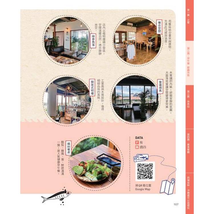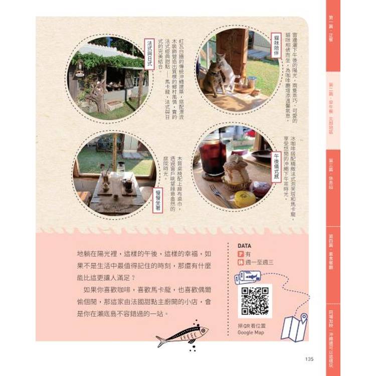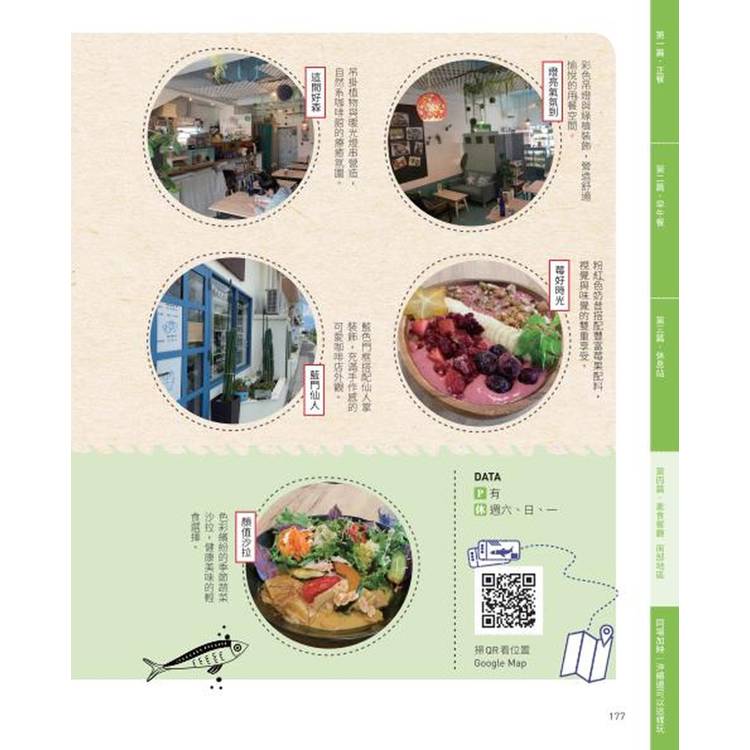 關於書中介紹的餐廳與景點,我們不刻意給予評價,僅根據現場環境、特色菜色或遊玩體驗,提供簡單資訊,讓你依照自己的喜好自由選擇。我們希望讓你在旅途中,不必再苦找排行榜上的「必吃」、「必玩」名單,而是走到哪裡、吃到哪裡、喜歡就停下來。