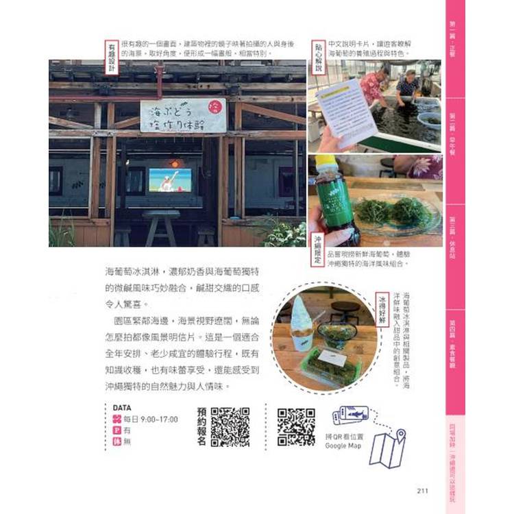 想想,好像還沒有人把自己旅行中吃過、玩過、感受到的精采內容整理成一本書來介紹。所以,這一次,我們決定以「吃+玩+體驗」為主軸,帶你深入探索沖繩的旅遊魅力。餐廳有好有壞、口味也見仁見智,就交給每個人自己評分吧!
