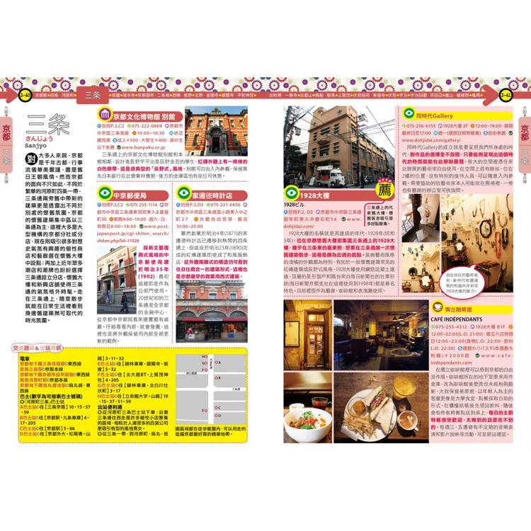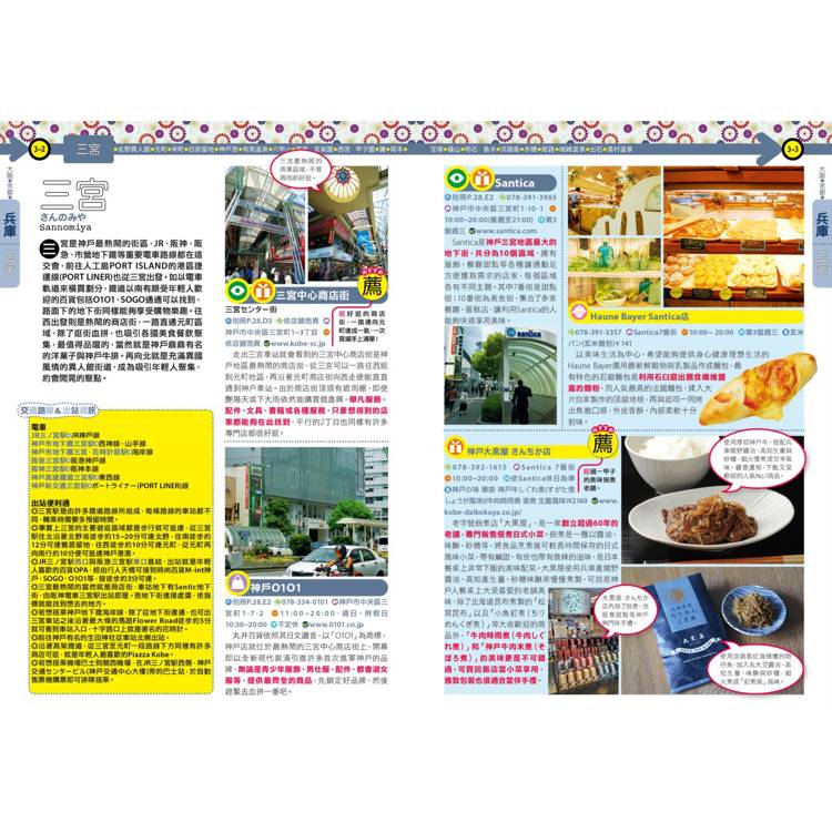 輕巧的地圖別冊分類京阪神各區域景點、美食及商店。
