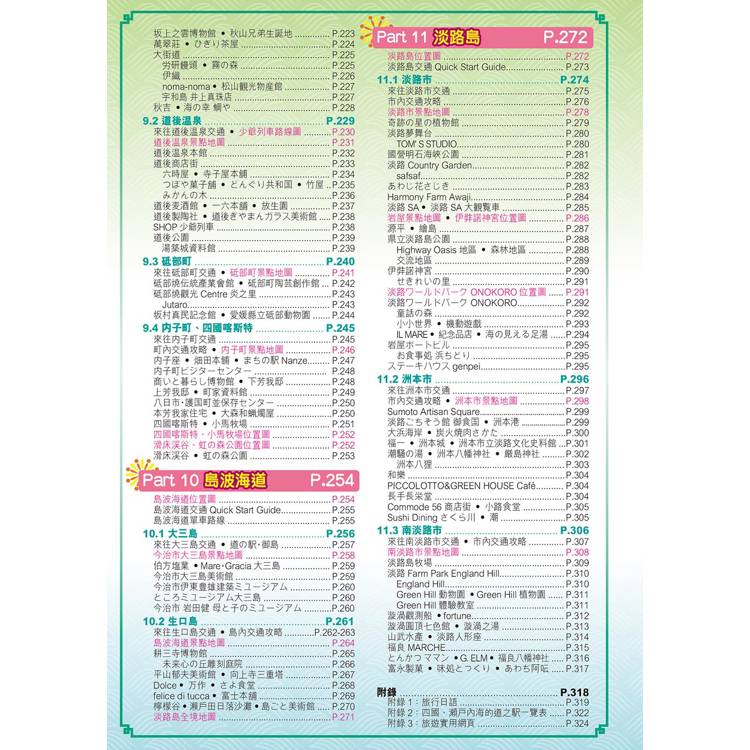26-27年新版的四國旅遊書,帶你深度遊四國:島波海道單車遊、親手製鳥冬、跳阿波舞、搓泥造碗、訪四國水族館、天空之鏡打卡點,更全面暢遊香川、徳島、高知、愛媛四大縣。自然風光、藝術小島、鄉土美食,統統都是當地魅力所在。書內所有景點上更有Online Map QR Code,用手機掃瞄即可定位及查閱景點位置,配合隨書附送的四國旅遊大地圖及自駕遊大地圖,跨縣或跨區同樣無難度。就趁現在,一起出走入人氣急升的迷人海島吧!