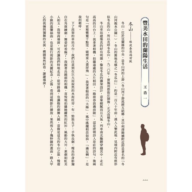 蘭陽平原風情萬種,讓許多都市人將宜蘭視為「後花園」。豐饒的土地加上交通便利,吸引愈來愈多人移居此地,有的蓋起豪華農舍,有的晴耕雨讀專心務農。這趟旅行是一趟觸動內心的學習之旅。