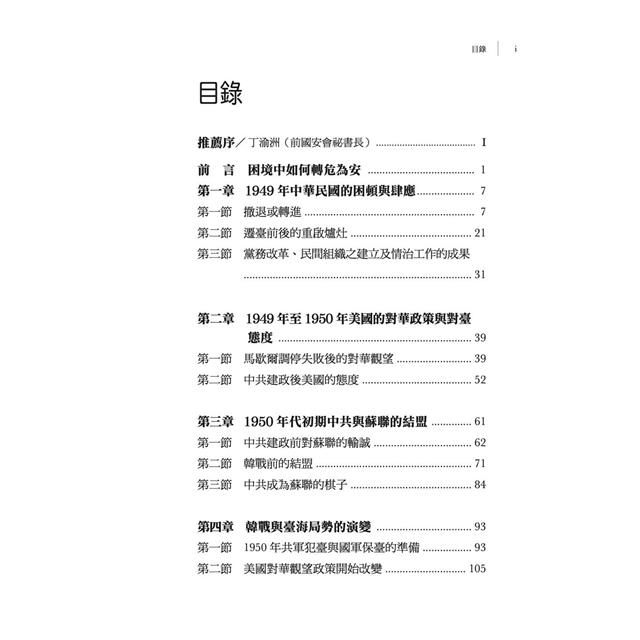 從1949年後半的大遷徙,到1955年《中美共同防禦條約》生效,短短五、六年的關鍵年代中,中華民國政府能夠在臺灣、澎湖、金門、馬祖站穩,並且奠定了後來發展的基礎,不論從海峽兩岸或是國際情勢的發展來看,軍事和外交的因素都扮演了最重要的角色。