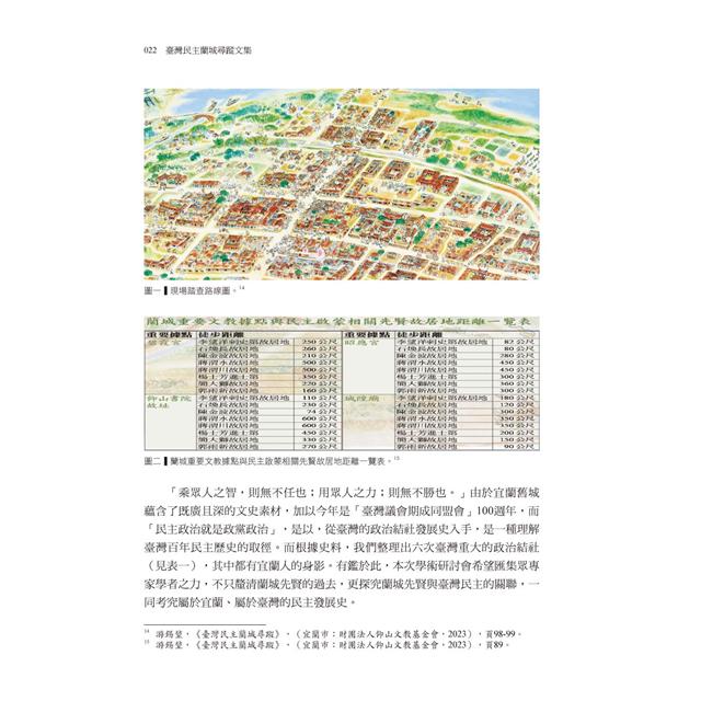 近年來亦致力臺灣民主政治發展史相關研究,除了出版《臺灣民主蘭城尋蹤》專書,並邀請眾史家梳理宜蘭舊城與臺灣民主發展,舉辦「臺灣民主蘭城尋蹤學術研討會」。今將研討會論文彙編出版為本書,還原在地歷史真相,以利再現宜蘭舊城的百年風華。