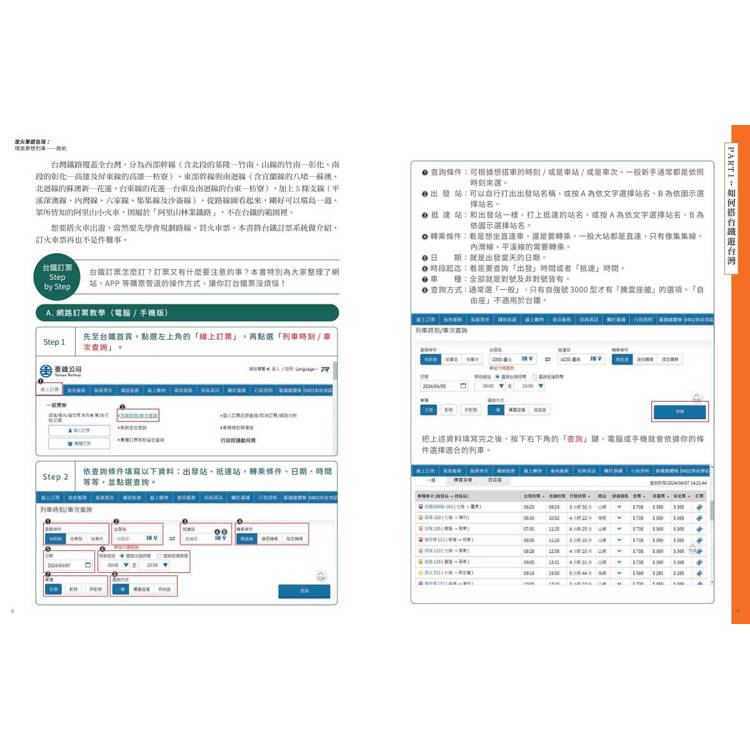 不會使用 3C 產品訂火車票、不知道「台灣好行」有哪些路線?怎麼搭?書中以 Step by Step 方式,讓長者知道如何用手機或電腦訂票、如何利用台鐵和「台灣好行」遊台灣!