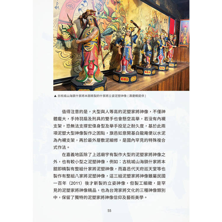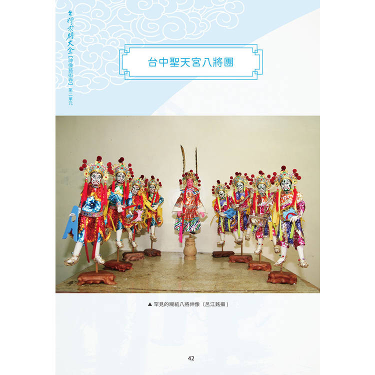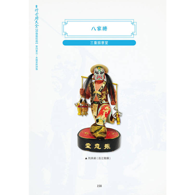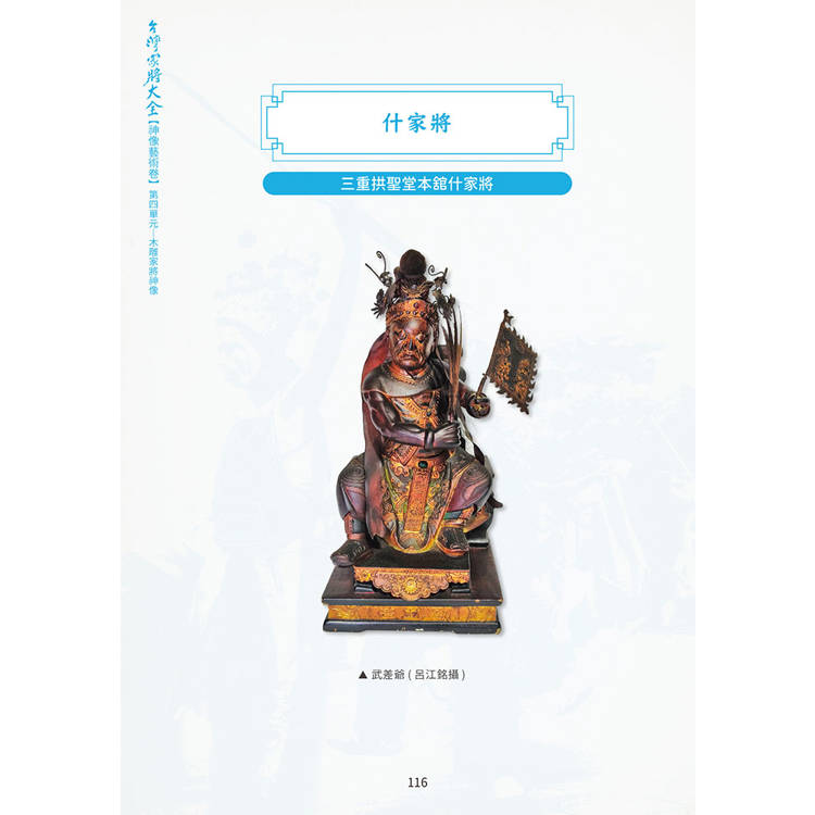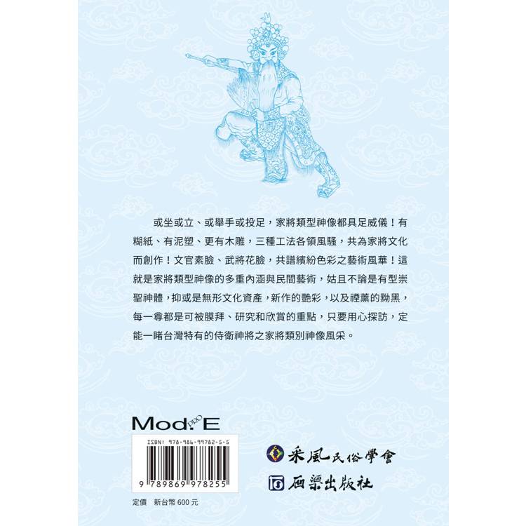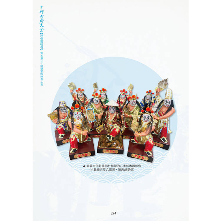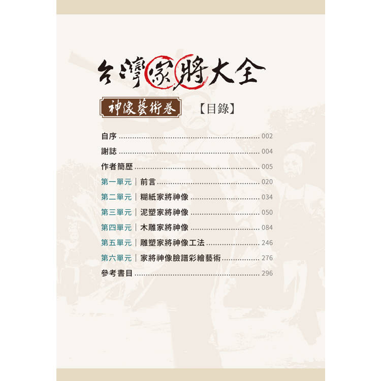 本套《台灣家將大全》系列叢書,從〈溯源總論卷〉、〈家將種類卷〉、〈家將角色卷〉、〈臉譜彩繪卷〉以及〈刑具服飾卷〉,至這本〈神像藝術卷〉已是第六本,但還不及解釋台灣家將文化精髓之半數!只能夙夜匪懈持續追將記錄,務期能全觀台灣特殊的家將文化,唯因利用業餘時間匆忙付梓,恐有疏漏,尚祈方家不吝指正。