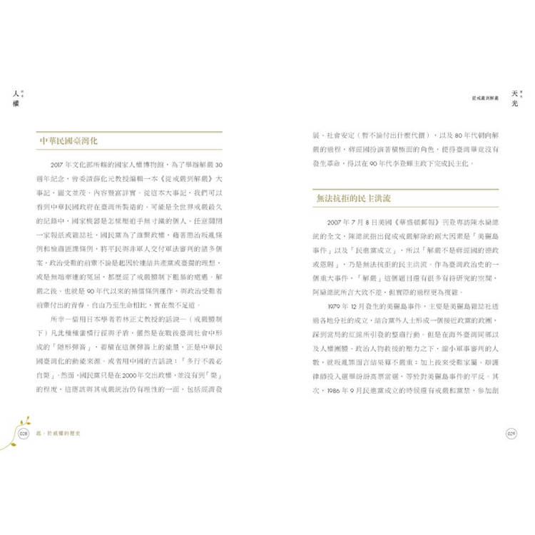 翻開這套書,猶如在微光中前行,看見人心細緻的紋理,也看見島嶼如何從創傷之中學習共生。天光並非自然降臨,乃由無數人曾經的苦難與堅持所照亮的方向。