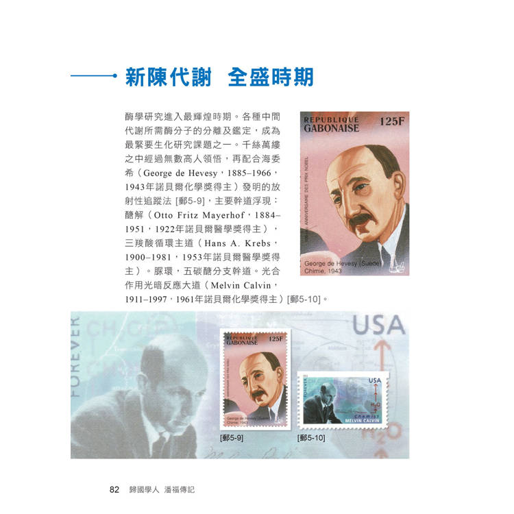 書中別出心裁地蒐錄大量與化學、生化主題相關的郵票,作為圖文佐證與藝術點綴,使這本全彩傳記不僅是一位科學家奮鬥歷程的記錄,更是一部兼具學術意涵與收藏趣味的「酶學主題郵集」。