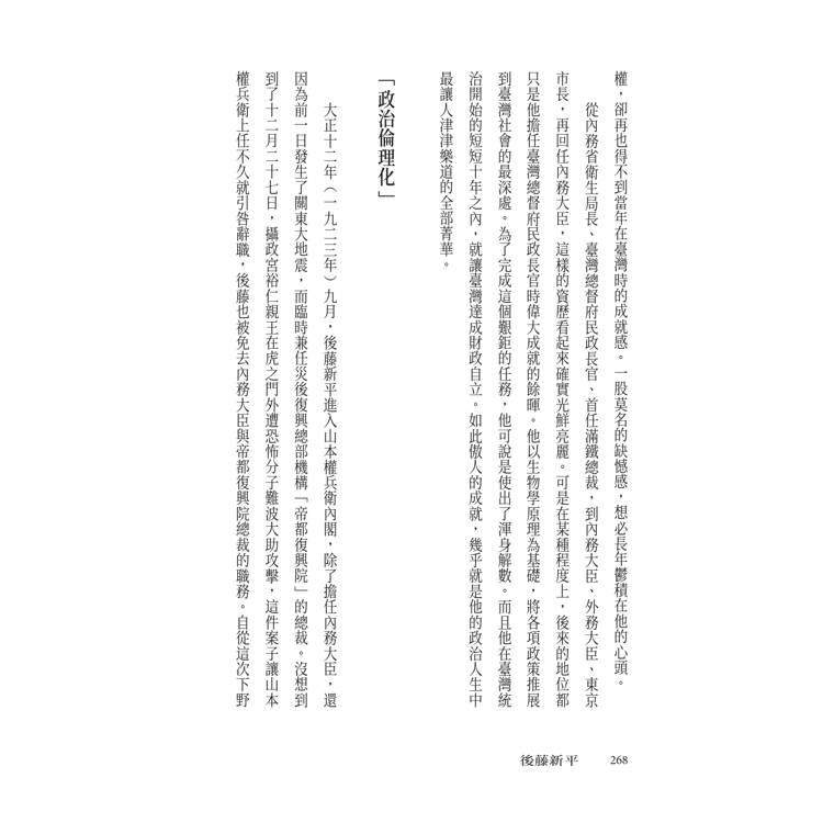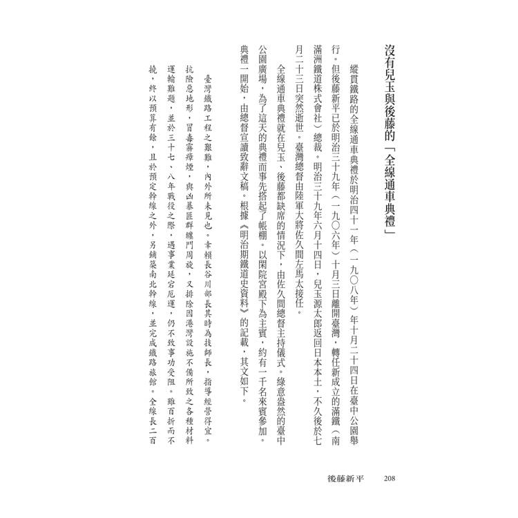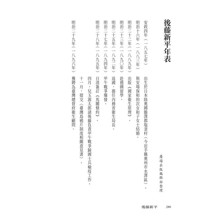 本書附有數十張人物、建築、地景圖片,以及後藤新平年表。