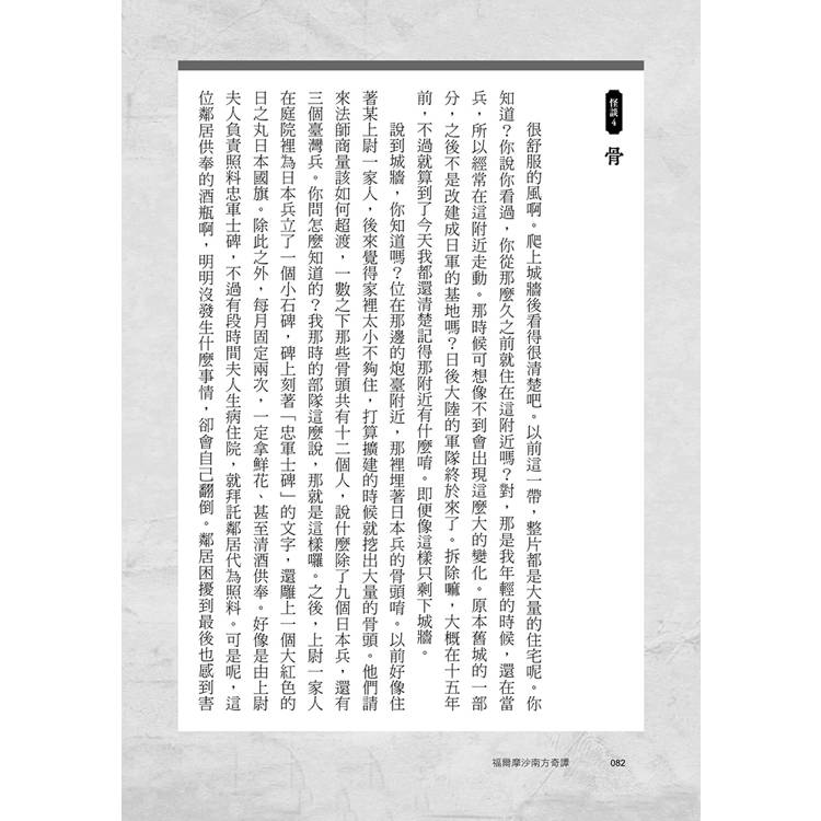作為一個決心在臺灣生活的異邦人,倉本知明以獨特的跨文化視角,看見了在地人習以為常因而忽略的寶藏。混雜傳說與傳承、文學與歷史,結合地方志、警察檔案、審判紀錄、人類學調查報告,以及十幾年間與南臺灣人們的對話,他創造了一種嶄新的文體。在書中,過去曾經活過的人們與當下正在活著的人們的聲音交織在一起,其中甚至參雜著作者自己的聲音。正是在一一撿起這些散落的歷史碎片的過程中,作者找到了身為異鄉人的自己與這座島嶼的連結,同時也向我們發出「如何生存於此刻?」的疑問。