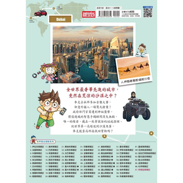 這次,麥克以韓國參賽者代表,獨自前往杜拜參加「國際兒童音樂大賽」。第一站,他先去參訪了「杜拜未來博物館」,希望能從中獲得一些音樂創作靈感。在館內,麥克認識了當地人費瑟,沒想到當他們分開之際,費瑟卻遭到不明人士襲擊倒地,手上那隻看起來價值不菲的黃金手鐲竟然被搶走......麥克陰錯陽差的被捲入了一場寶物搶案,他能抓到犯人並找回那隻黃金手鐲嗎?讓我們跟著麥克的腳步,在這座兼具經濟與文化魅力的杜拜,展開一場刺激的奪寶大冒險吧!