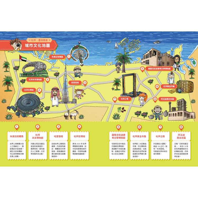 阿拉伯聯合大公國是由七個酋長國共同建立的聯邦國家,「杜拜」是其中人口最多、最活躍的經濟重鎮。雖然不像阿布達比那樣擁有大量石油資源,但在貿易、金融、觀光產業等各個領域,都發展得相當耀眼。杜拜在持續經濟發展的過程中,吸引了大量外籍人口前來工作與生活,所以非本國籍者佔了很高比例。官方語言是阿拉伯語,但英語、印地語和烏爾都語等皆可流通使用。