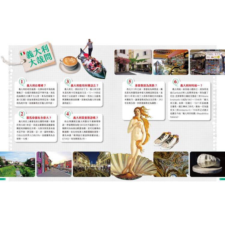 景點太多、太豐富而不知如何下手嗎?書中考量了交通便利性,規畫完整的北義8日經典行程、14日深度旅程,並附上行程簡介以及推薦的旅宿地點,跟著義大利旅遊達人的安排,踏遍義大利大城小鎮吧!