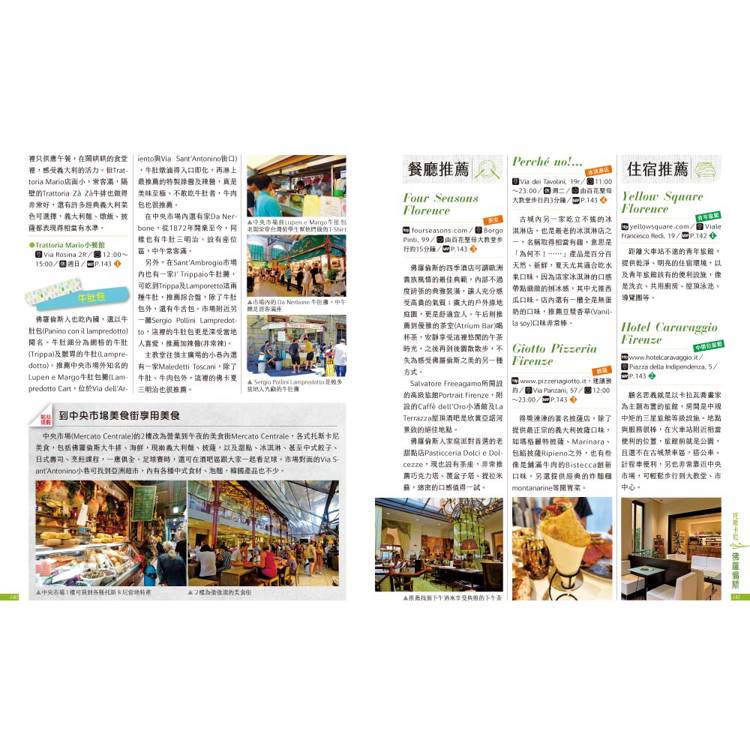 到佛羅倫斯飽嘗道地的牛排和特色牛肚包;有「肥胖之都」稱號的波隆那,必吃深受當地人喜愛的義大利肉醬麵專賣店Osteria dell’Orsa、火腿臘腸熟食店Tamburini……,作者帶你走進巷間、吃在市場,指引出最道地的餐館,饕客們若不相繼跟上,實在太對不起自己的味蕾啦!