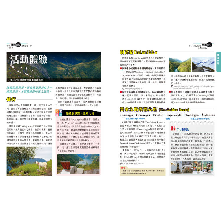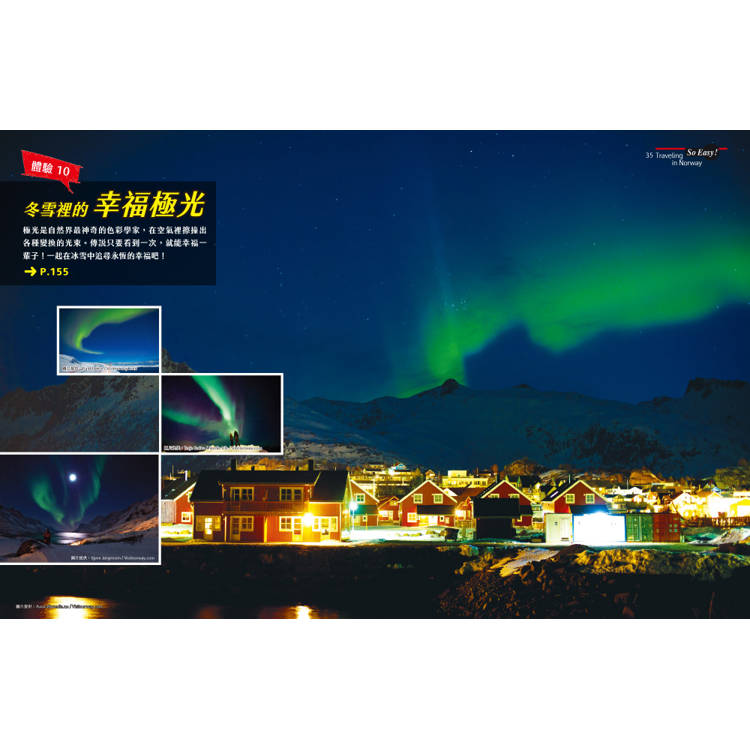 令人震懾屏息的挪威10大體驗,有甚麼比這個更過癮的?有峽灣、世界遺產、冰河健行、漁屋慢活、看極光等,喜歡哪一個體驗便速翻到書中的詳細介紹吧!