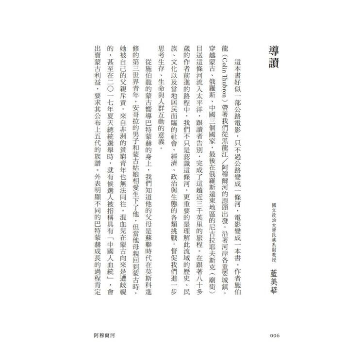 「走踏亞洲遠東地區最重要河流的迷人旅程,揭露歷史與政治的意外轉折……俄中之間的忡忡張力位居施伯龍著作的核心……為施伯龍備受讚譽的職涯再添動人成就,富含他招牌的抒情描寫,將大自然升華成栩栩如生的要角,往往反映出周遭之人的矛盾心理。」──BookBrowse.com