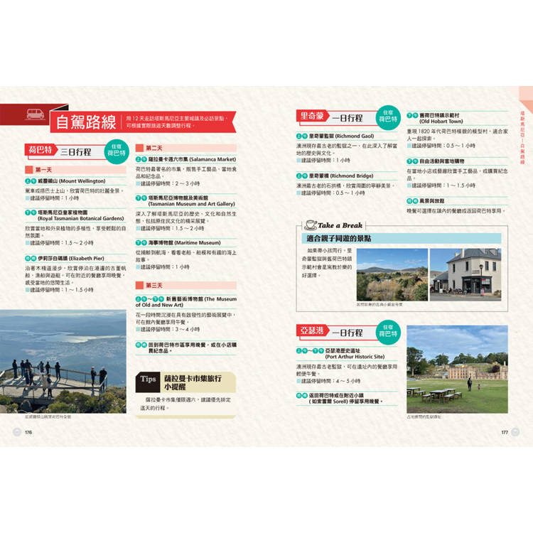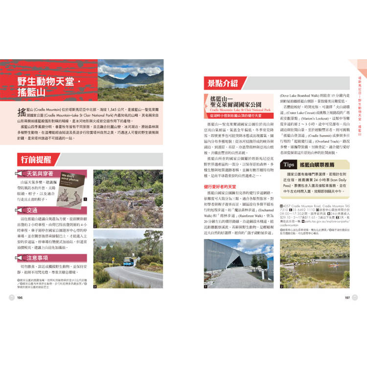 專章介紹被視為「澳洲紐西蘭」的塔斯馬尼亞,走訪荷巴特、朗賽斯頓等古老城市,到世界級遺產搖籃山國家公園與休閒愜意的斯特拉恩小鎮。除了美景,更整理出塔島必吃的特色海鮮與住宿建議,帶你感受南太平洋最原始的純淨力量。