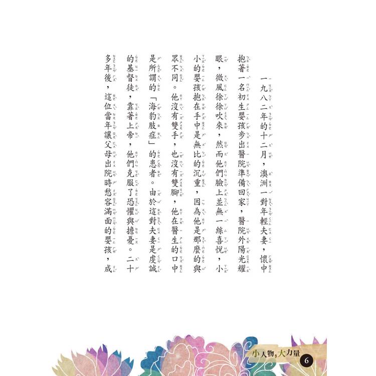 ★ 力克‧胡哲、安妮‧法蘭克、陳玉昆、萬家麗‧瑪泰、錫質平神父,他們雖然只是小人物,卻可以發出大力量,鼓勵人積極向上,永不放棄!